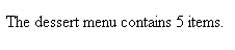 output.Text = "The dessert menu contains " + desserts.Length + " items.";