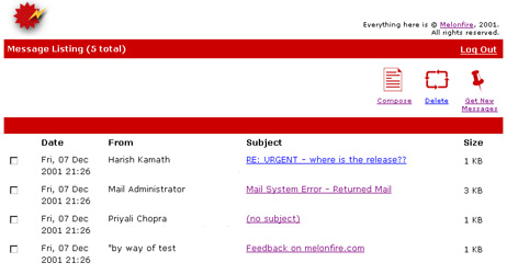 - Assuming that there are messages in the mailbox, an HTML table is generated to hold the message headers. In this case, I’ve decided to display the message date, subject, sender and size, together with a checkbox for message selection and an attachment icon if an attachment exists.