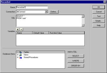 Now, the built-in features of Dreamweaver MX allow you to automate the processes of listing the records in the table, adding new records, modifying existing records, and deleting records - all with minimum hand coding.