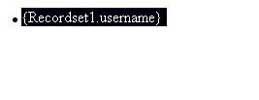 Now, go back to the editor and decide how you want to display the data returned in the Recordset. I like to keep things simple, so I merely created a bulleted list of users,