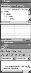 I’m assuming here that the rest of your development box is all set up, with a Web server (I use Apache, http://httpd.apache.org/), PHP (http://www.php.net/) and a database server (MySQL rocks, get it from http://www.mysql.com/). In case you don’t have all these, get yourself set up, and then flip the page to take Dreamweaver MX for a test drive.