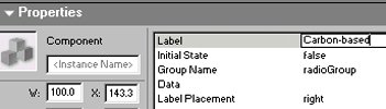 The label attached to the radio button instance on the Stage should change simultaneously.