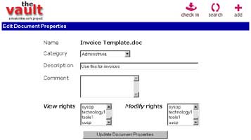 John also needs to assign permissions to the schedule (and other group documents) carefully, to ensure that only authorized people are viewing or making changes to it (this is particularly important for billing and invoice information). If John is technically qualified, he can easily use built-in Netware, Linux or Windows NT capabilities to assign document permissions…but what if he is (horror of horrors!) a manager?!