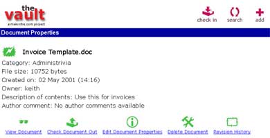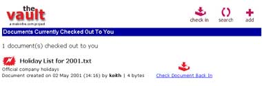 It should be noted at this point that this project is by no means complete. Since The Vault was introduced for internal use a few weeks back, a number of minor bugs have been reported, and some additional capabilities requested. Among the features requested: the ability to quickly display documents in specific categories; to sort listings by name, size, date and owner; to search by revision log comments; to limit the number of files displayed per page; to change the default colours; and to display the name of the currently logged-in user.