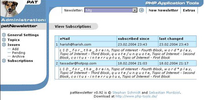 The official patNewsletter Web site, at http://www.php-tools.de/
