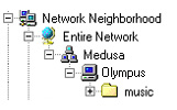 Connecting clients will now be able to see the “music” directory on machine “clubhouse” as a share named “music” on the “olympus” Samba server.