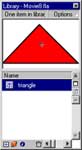 Now select it and use the Insert->Convert To Symbol command to convert your triangle to a symbol (or tap the F8 key). You’ll be asked to enter a name and behaviour for your symbol; since this symbol will be used as a static object, select “Graphic” as the behaviour, and name it “triangle”. You should now be able to see your symbol in the Library - you can check this by tapping Ctrl-L.