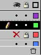 Layers are transparent by default, and you can use the three control buttons on each layer to alter layer visibility, “lock” the layer to prevent changes from being made to it, and display the elements on a layer as outlined (rather than filled) objects.