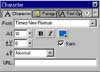 You can easily alter the characteristics of the inserted text via the Window -> Panels -> Character panel – this panel allows you to specify attributes like typeface, colour, size, emphasis and tracking.(the space between individual characters of the font). You can also adjust the character position – normal, superscript or subscript – and, in the case of paragraphs, the alignment, margin widths and line spacing.
