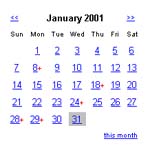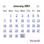 Now, by itself, this isn’t very useful, since it only displays information for the current month (as determined by the server’s clock). My next task, therefore, is to make it possible to move forwards and backwards through the year, by activating the “next” and “previous” links on the first row.