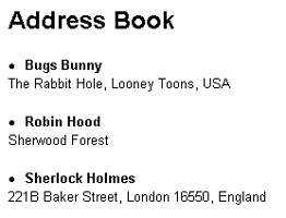 This next example will query the database, return the list of addresses, and display them all as a neatly-formatted list.