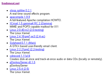 And here’s the PHP script that combines the stylesheet above with the Freshmeat RDF document described previously to generate an HTML page: