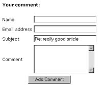 Next, I’m going to construct a form which will ask for some basic user information, and allow the user to enter a comment on the article. Once that form is submitted, a PHP script will process the information entered into it and store the result in the database via an INSERT operation.