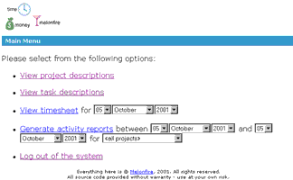 provided reports on the hours worked by different users on a specific project, together with summary totals (to simplify billing, and to understand employee contributions to different projects);