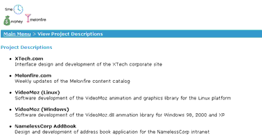 With the main menu out of the way, let’s now begin putting together the scripts corresponding to the different menu options. The first of these is the script “projects.php”, which allows users to view a list of active projects.