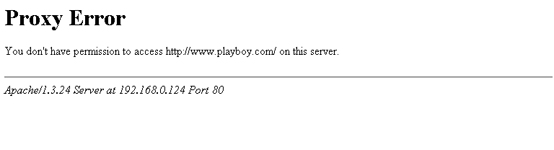 The ability to have all HTTP requests directed outside the network going through a single proxy, which is completely under your control, opens up some interesting possibilities. One of the most common ones involves using the proxy to filter out and reject requests for certain “bad” sites. Here’s an example, which uses the very powerful ProxyBlock directive to reject all requests for the Playboy Web site.