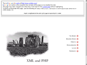 Google also allows you to retrieve cached Web pages from its database, via the exposed doGetCachedPage() procedure. Here’s a quick example, which demonstrates retrieval of the URL “http://www.xmlphp.com/” from the Google cache.