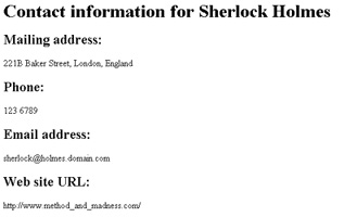 <h1>Contact information for <b><xsl:value-of select="me/name" /></b></h1>