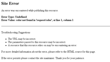 In this case, since my code requires the “size”, “face” and “color” input variables to be specified as input parameters via the URL (notice that I have not used the “default” condition here, as I did in the previous example), an error will be generated if these variables are not present. However, rather than displaying the standard Zope error message,